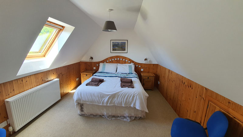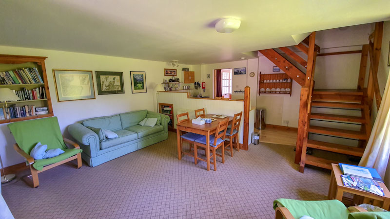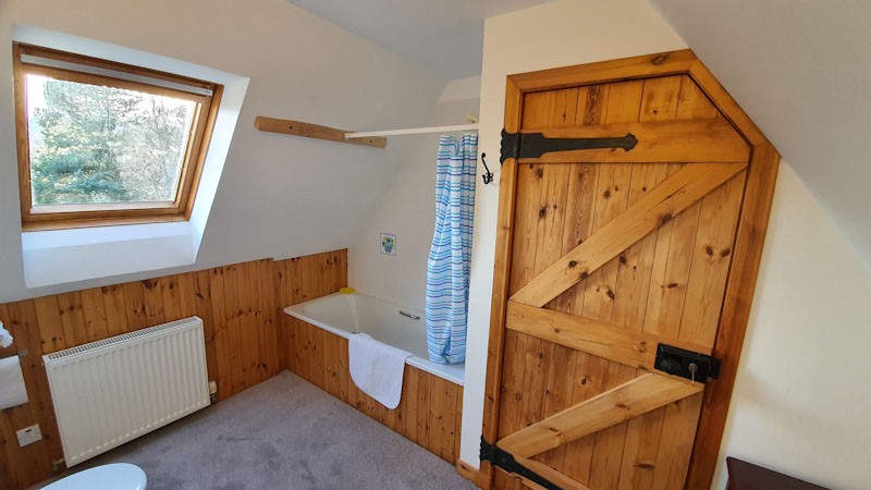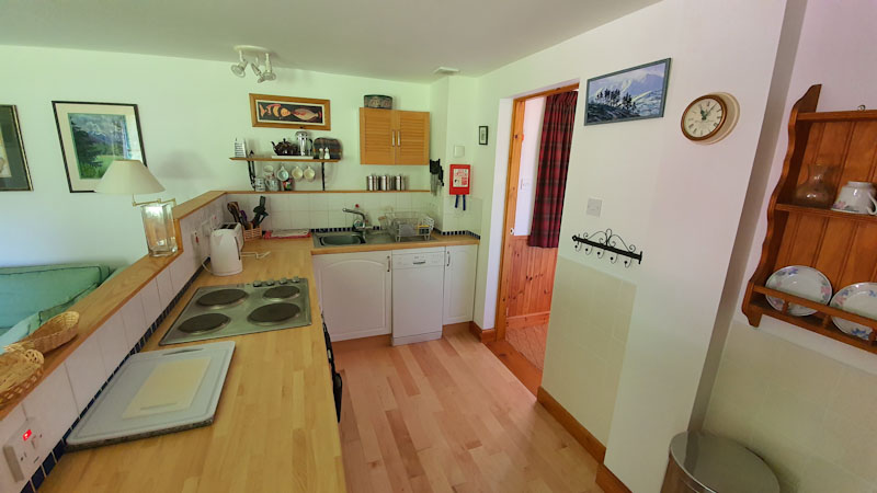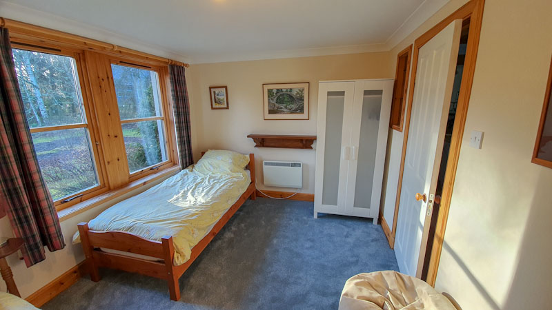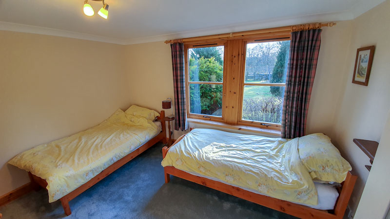 - The second bedroom (downstairs) was formerly part of the steading and is equipped with two single beds. A cot, highchair and single bed guard is available (please mention when booking) for either bedroom.